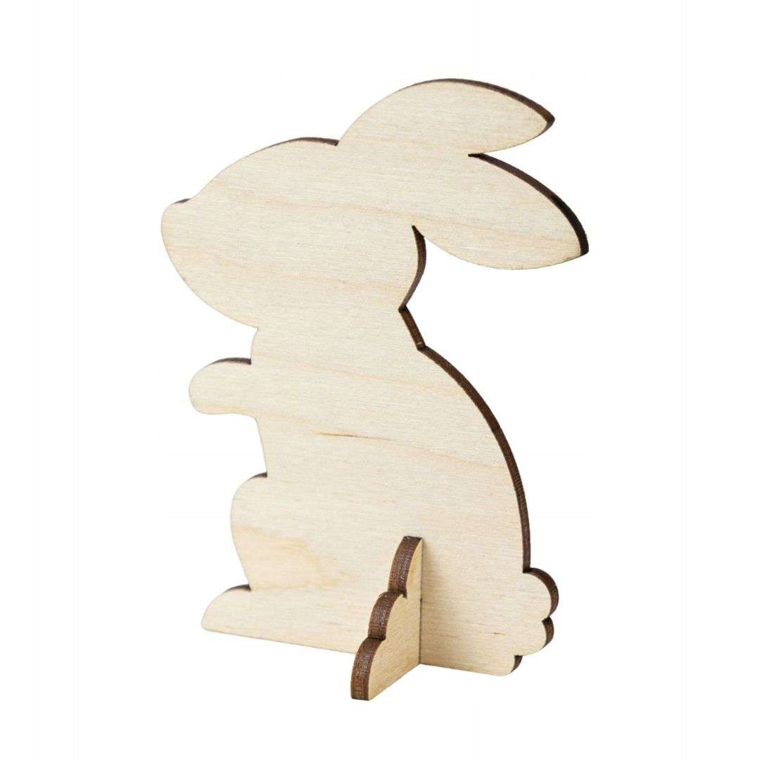 Każdy króliczek posiada stylizowaną nóżkę, dzięki której stabilnie, samodzielnie stoi.