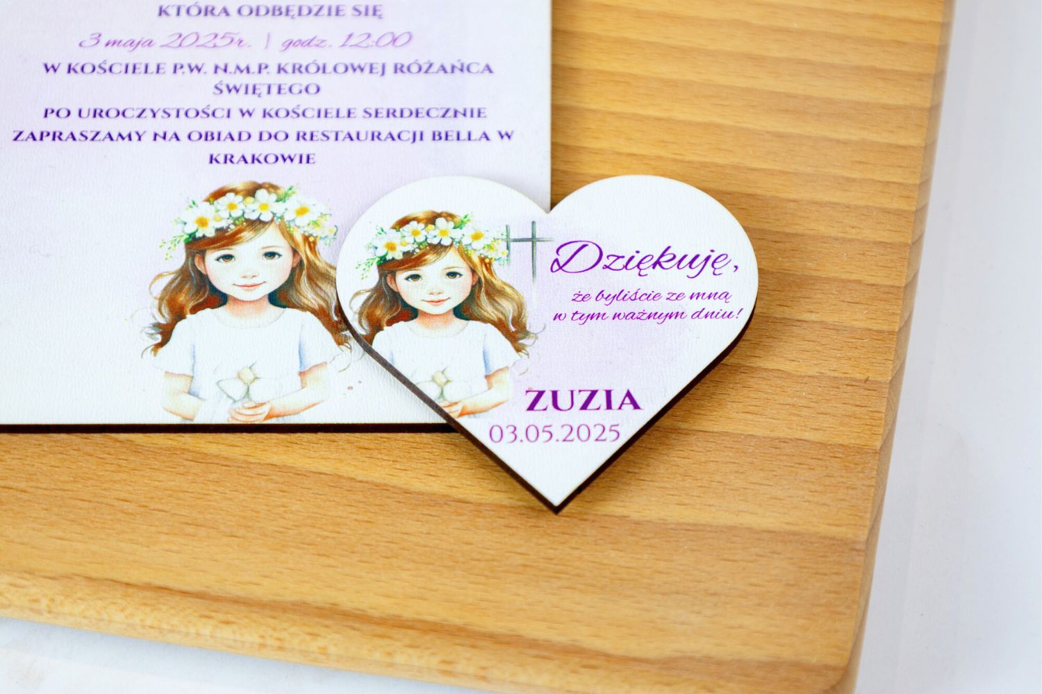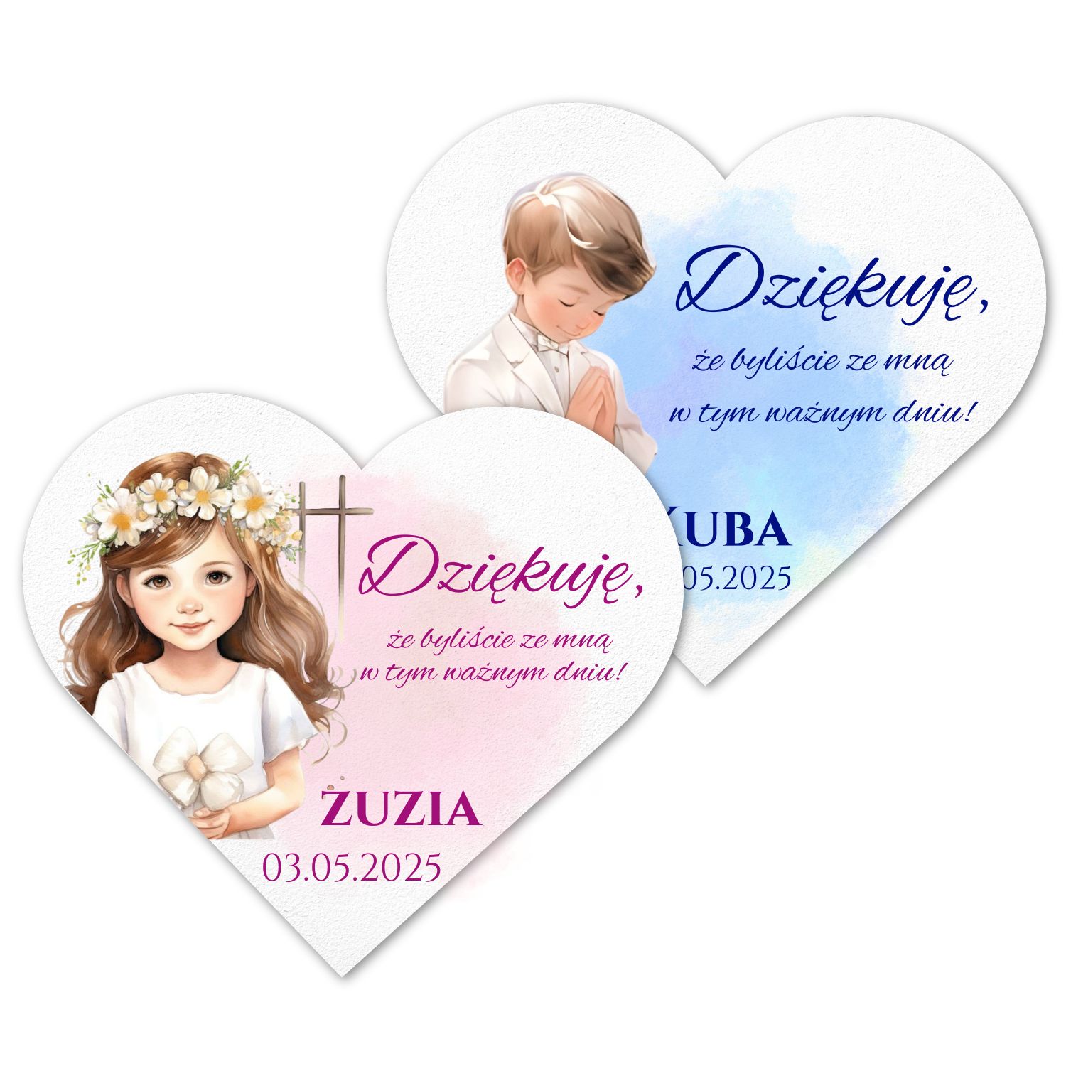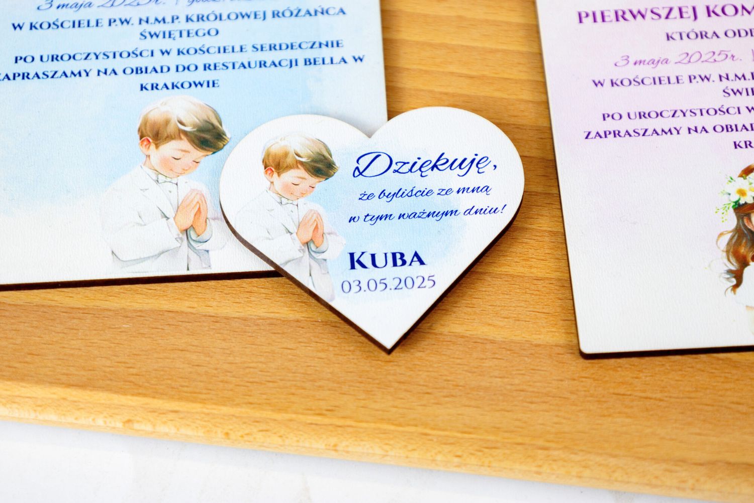 Podziękowanie dla gości w dniu Pierwszej Komunii Świętej to nowoczesna i elegancka możliwość zaskoczenia swoich gości! Kształt serca, forma magnesu oraz trwały nadruk UV sprawiają, że będzie to naprawdę wyjątkowa pamiątka.