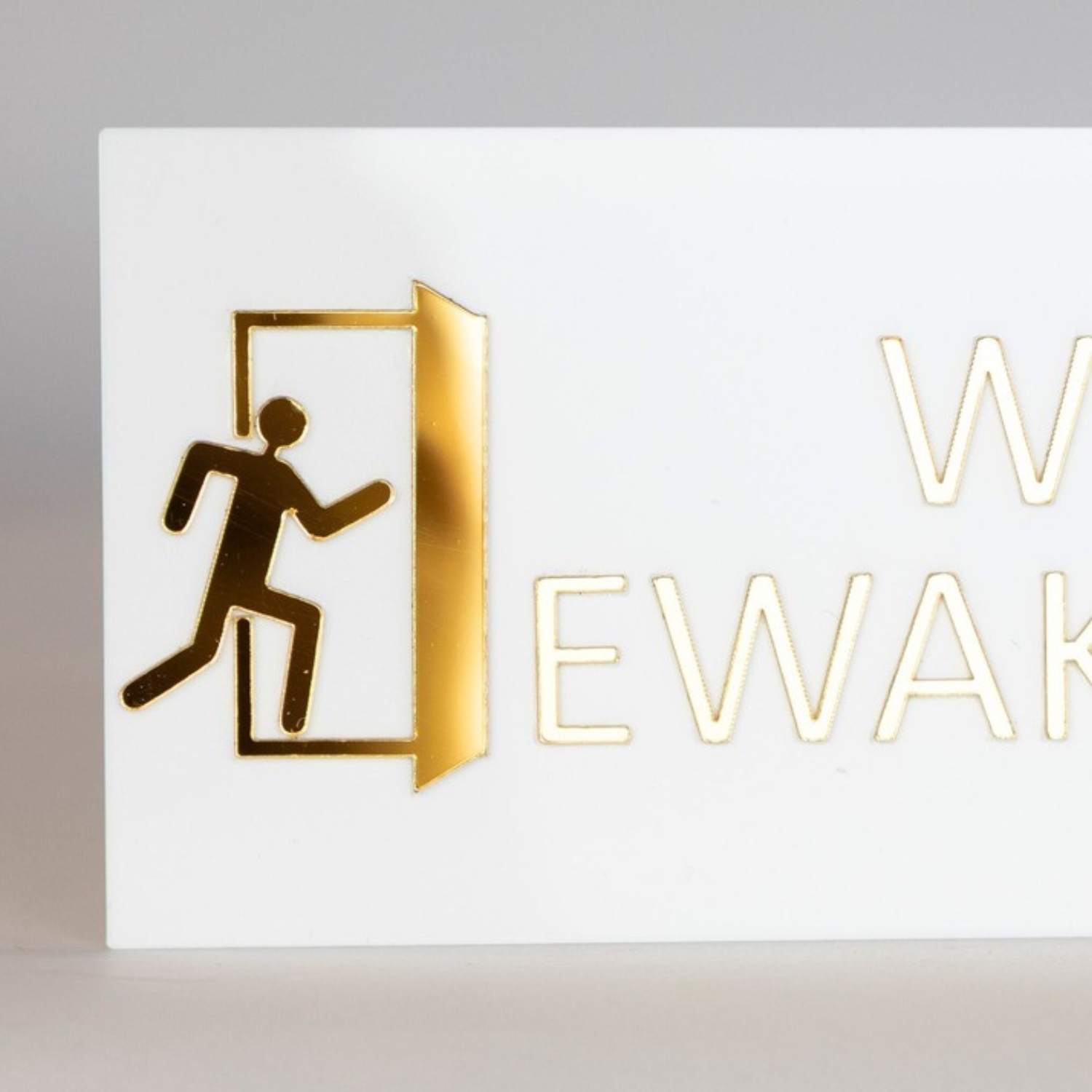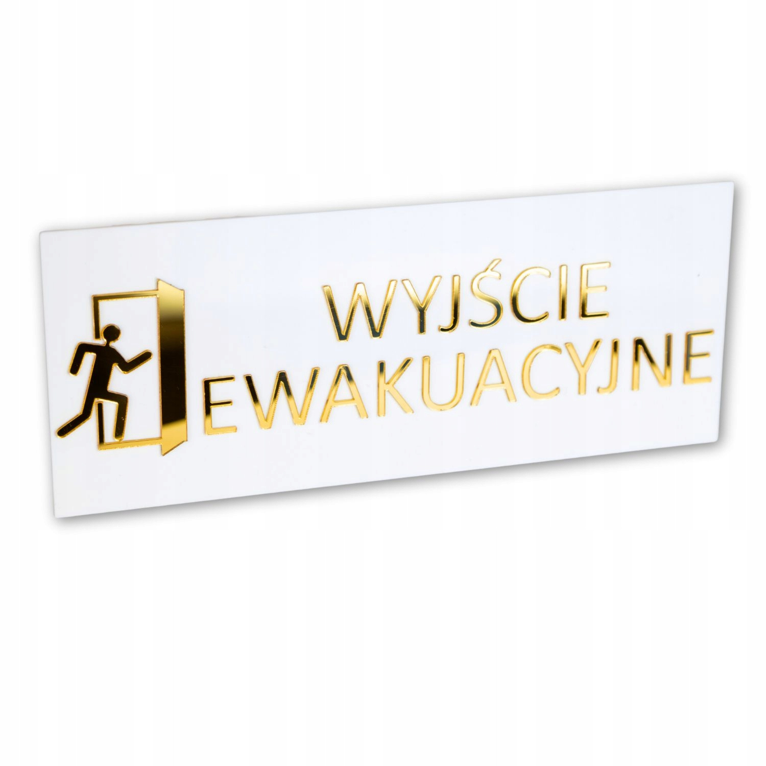 Tabliczka WYJŚCIE EWAKUACYJNE została wykonana z solidnego szkła akrylowego (plexi) w eleganckim białym kolorze. Złote, lustrzane napisy nadają jej ekskluzywny charakter w stylu glamour, który doskonale komponuje się z nowoczesnymi i klasycznymi wnętrzami.