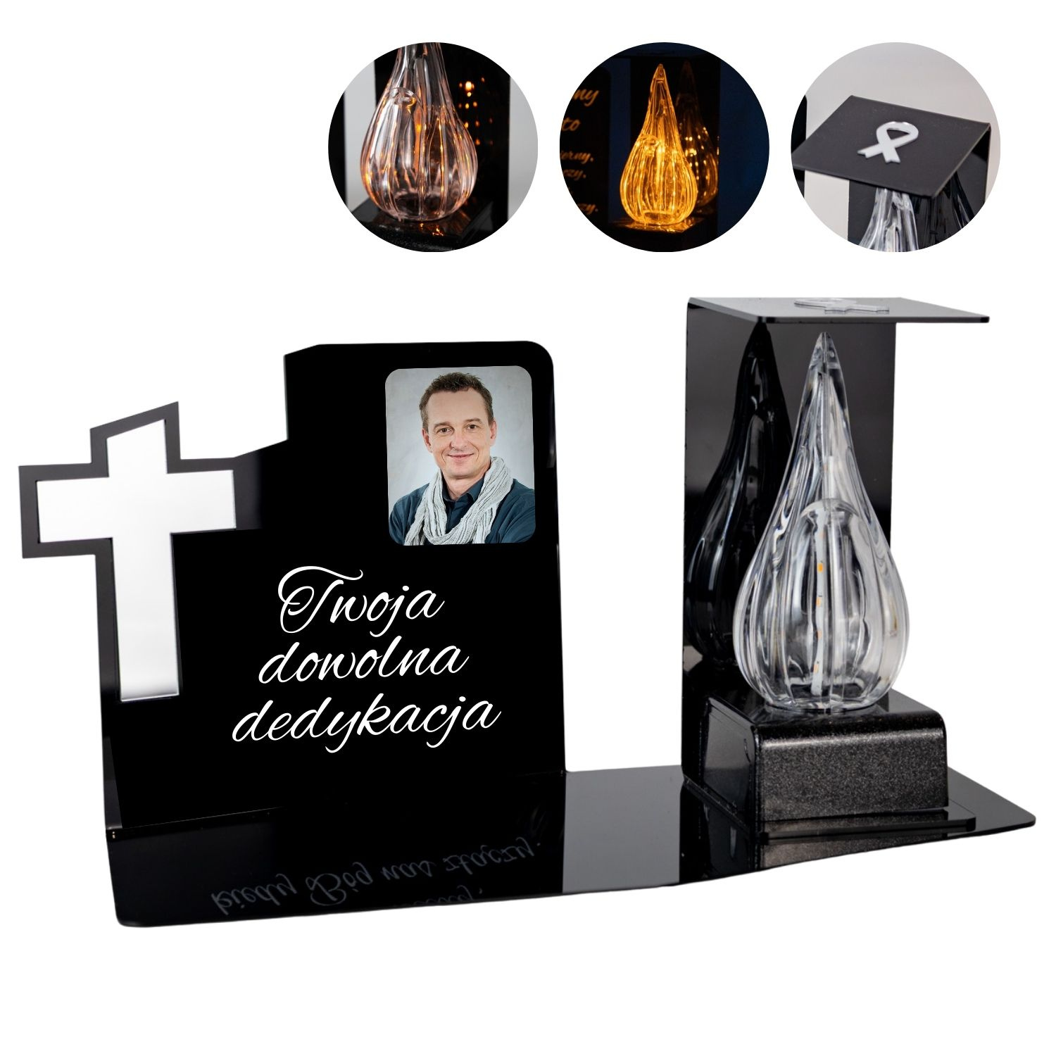 W pełni spersonalizowany znicz LED wykonany z najwyższej jakości szkła akrylowego to doskonała forma upamiętnienia bliskich Ci osoby w indywidualny sposób.